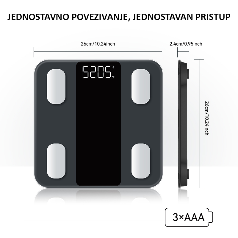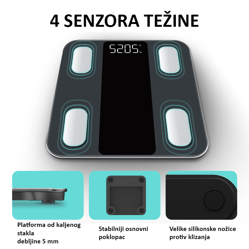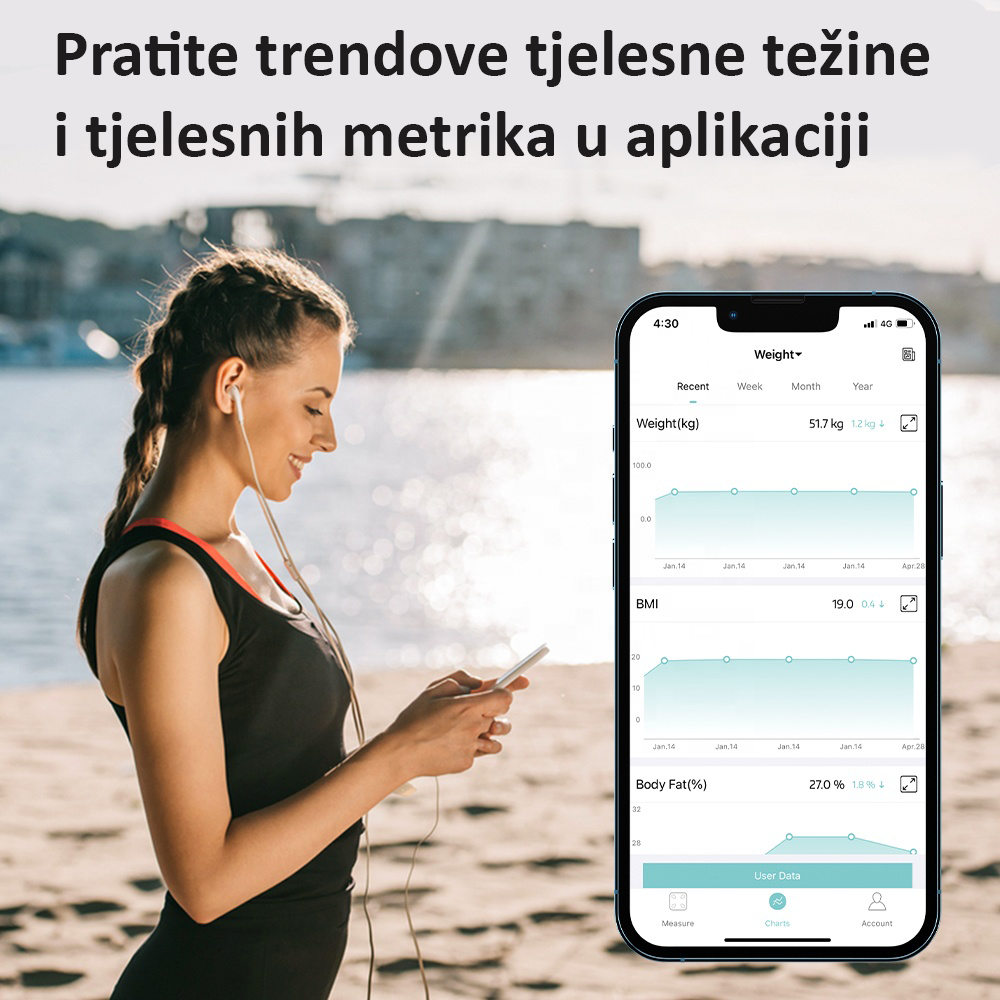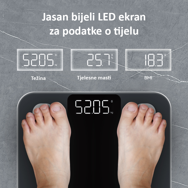 Scallo vaga nije samo vaga – to je vaš lični asistent za praćenje napretka. Zahvaljujući Bluetooth povezivanju i Fitdays aplikaciji, svako mjerenje postaje korak ka boljoj formi. Sve podatke možete pratiti u realnom vremenu na telefonu, jednostavno i precizno.